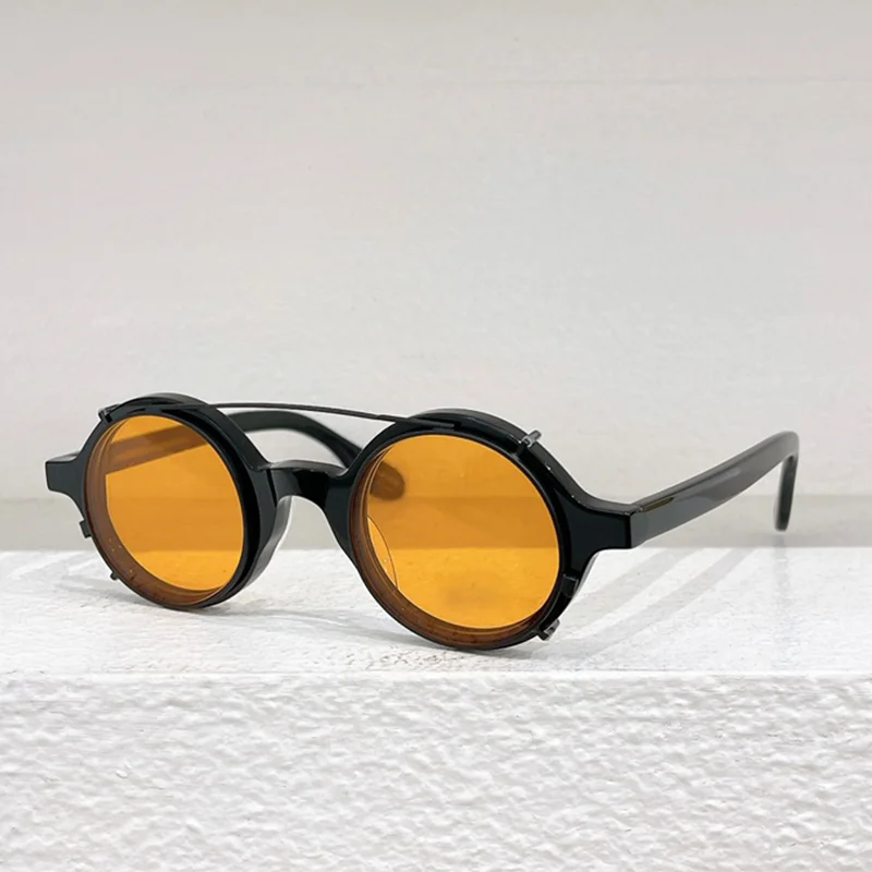 ZOLMAN Round Acetate Clip up Sunglasses Uv400 Designer Handmade Tortoise Gradient Outdoor Men and Ladies Classical Eyewear